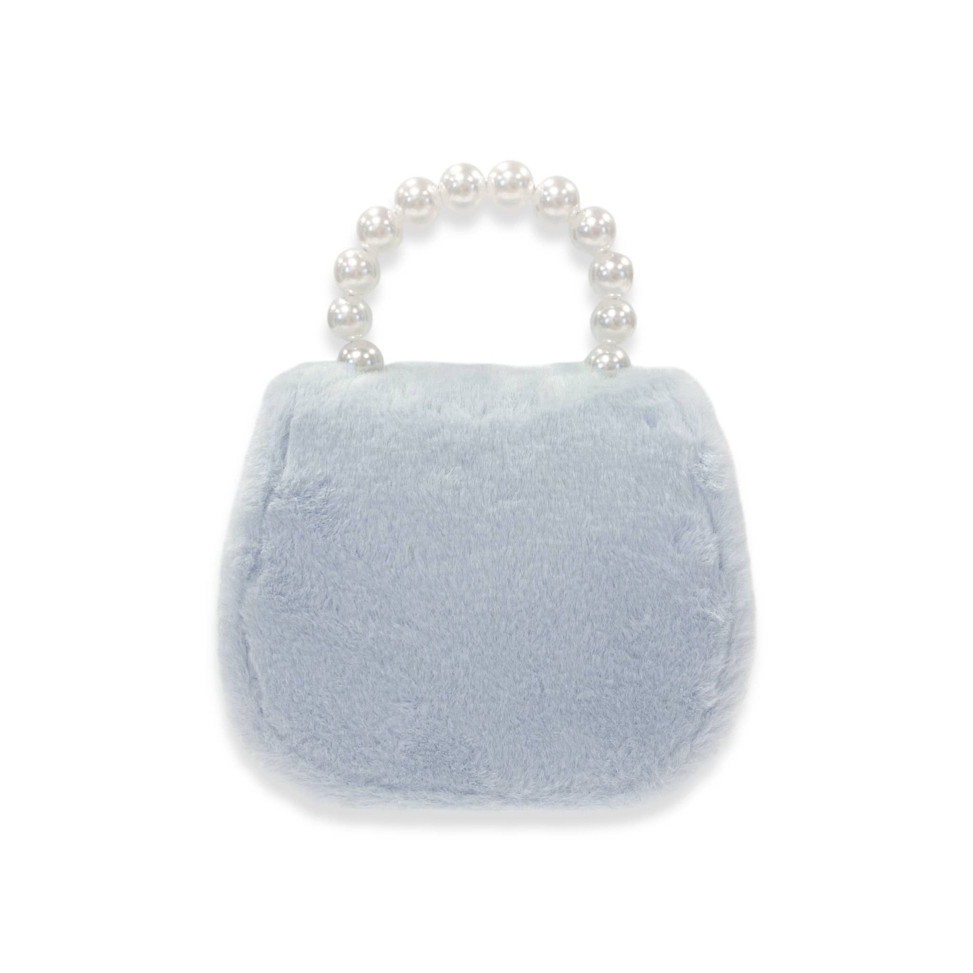 This adorable pearl handled furry purse features a lovely tulle bow with pearl accents and heart gem.