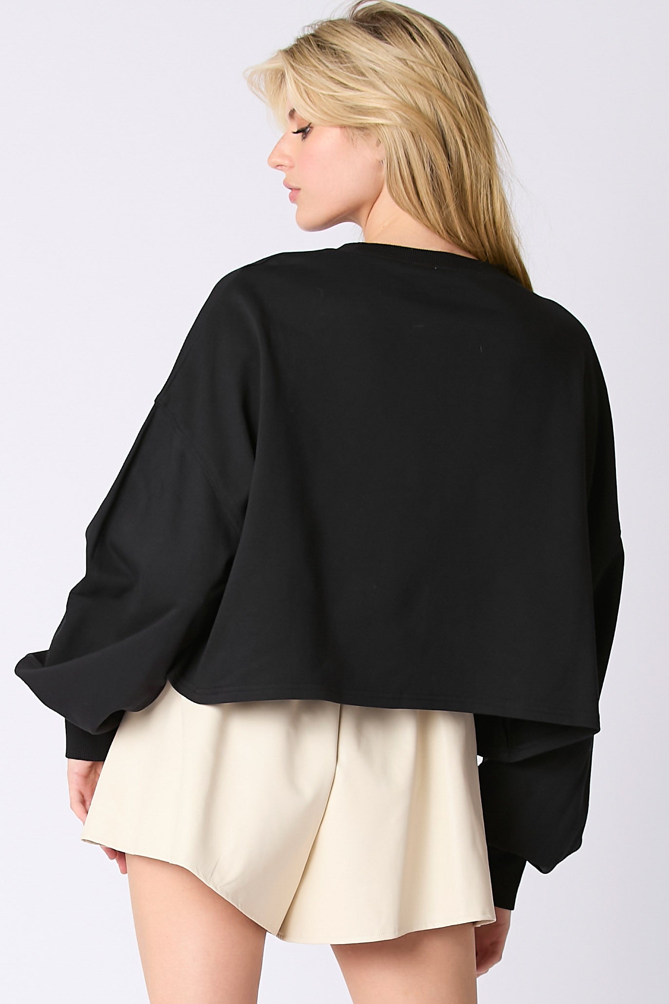 Featuring a boxy crop fit, this adorable lightweight sweatshirt is adorned with multi color sequin candy corns!