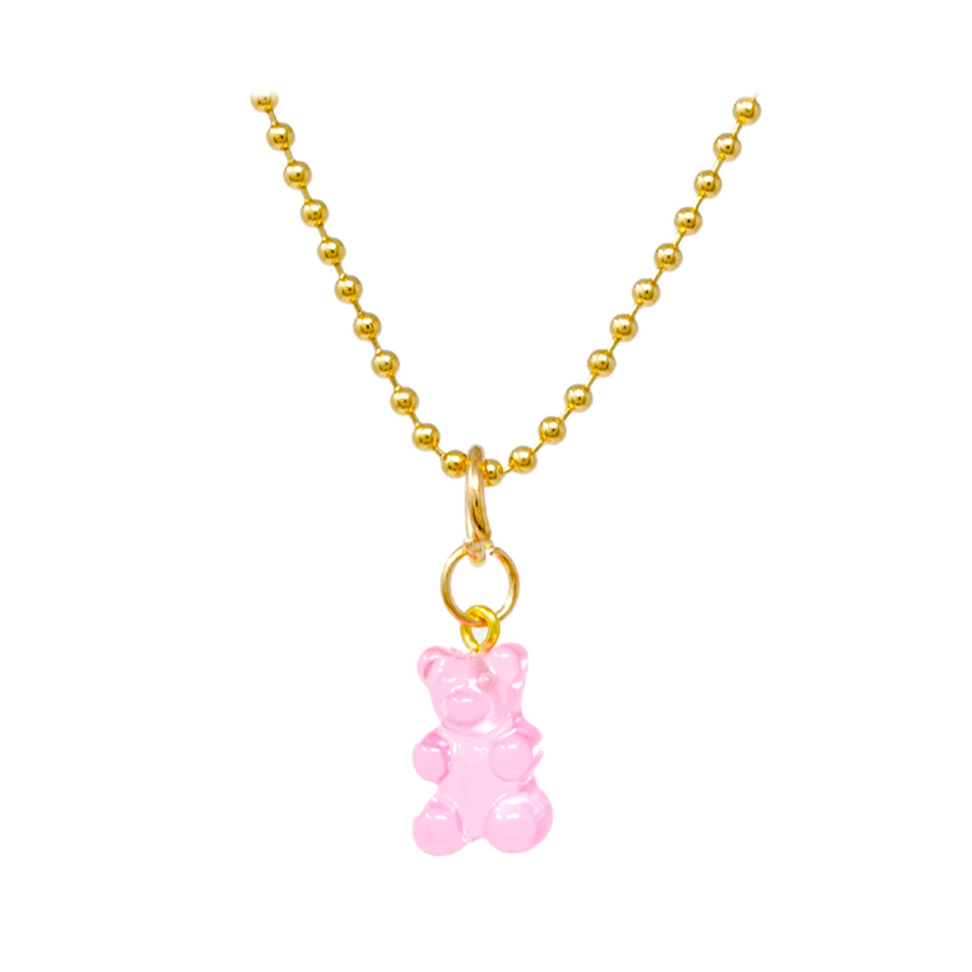 This gummy bear necklace looks so good you might just want to eat it! (Not Edible) The chain is a "ball chain" design and is adjustable. Details • 18K Gold Plated Stainless Steel • Adjustable size 16-18 inches • Comes with charm as shown in image • Individually packaged on card • Assembled in the USA with imported parts