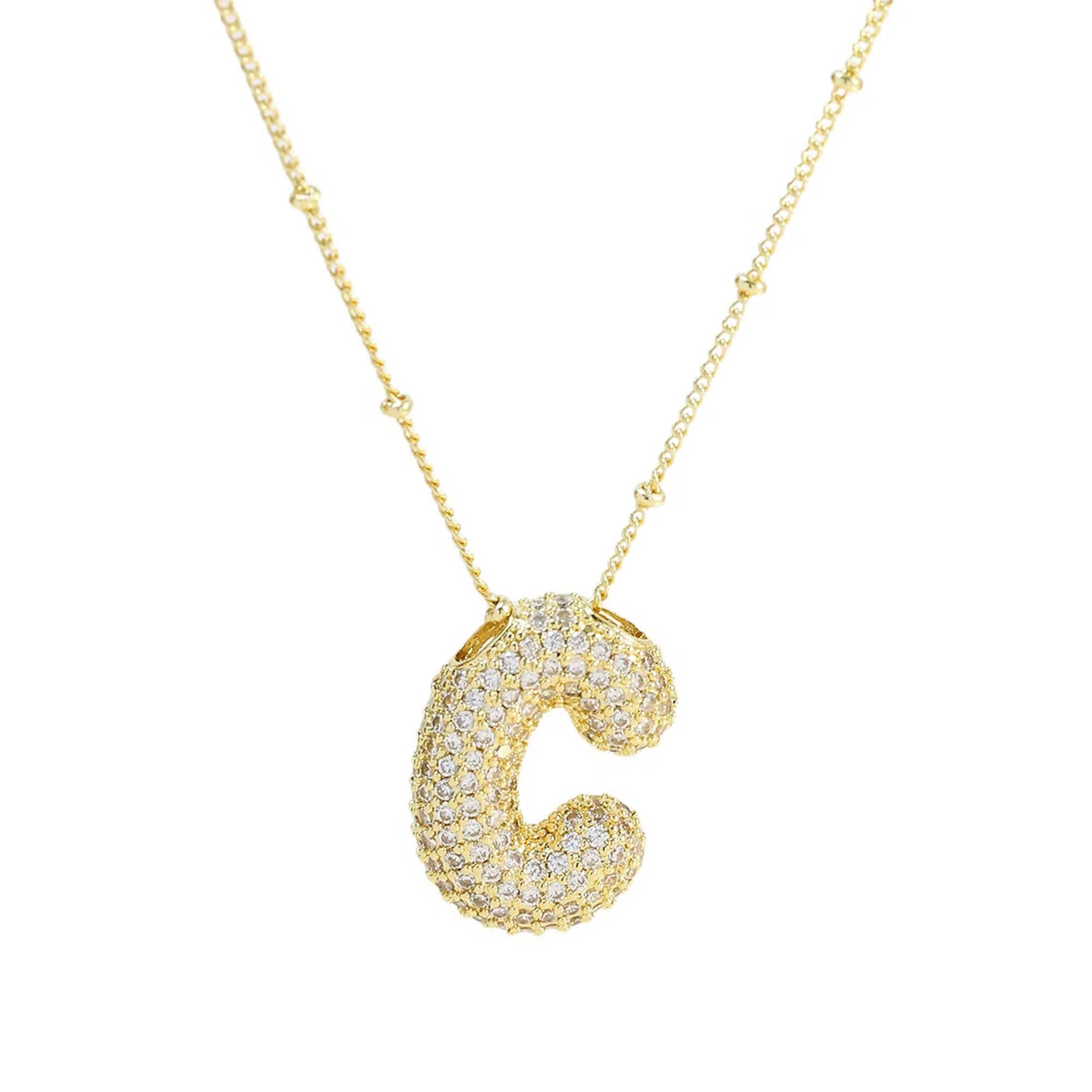 Mini Initial CZ Balloon Bubble 18K Gold Necklace