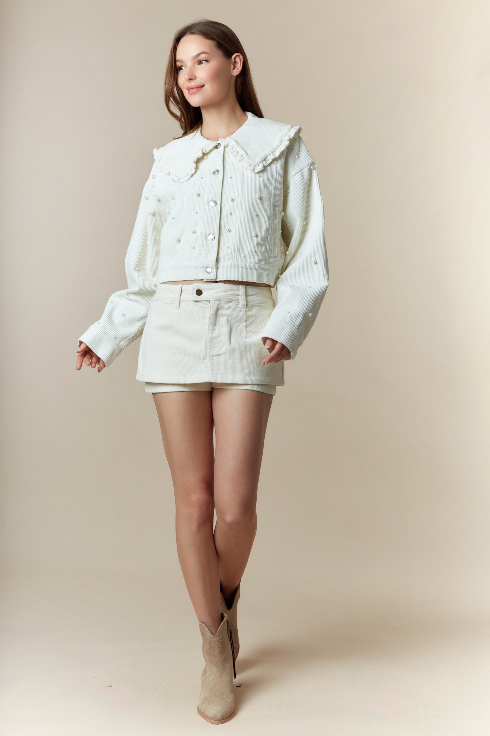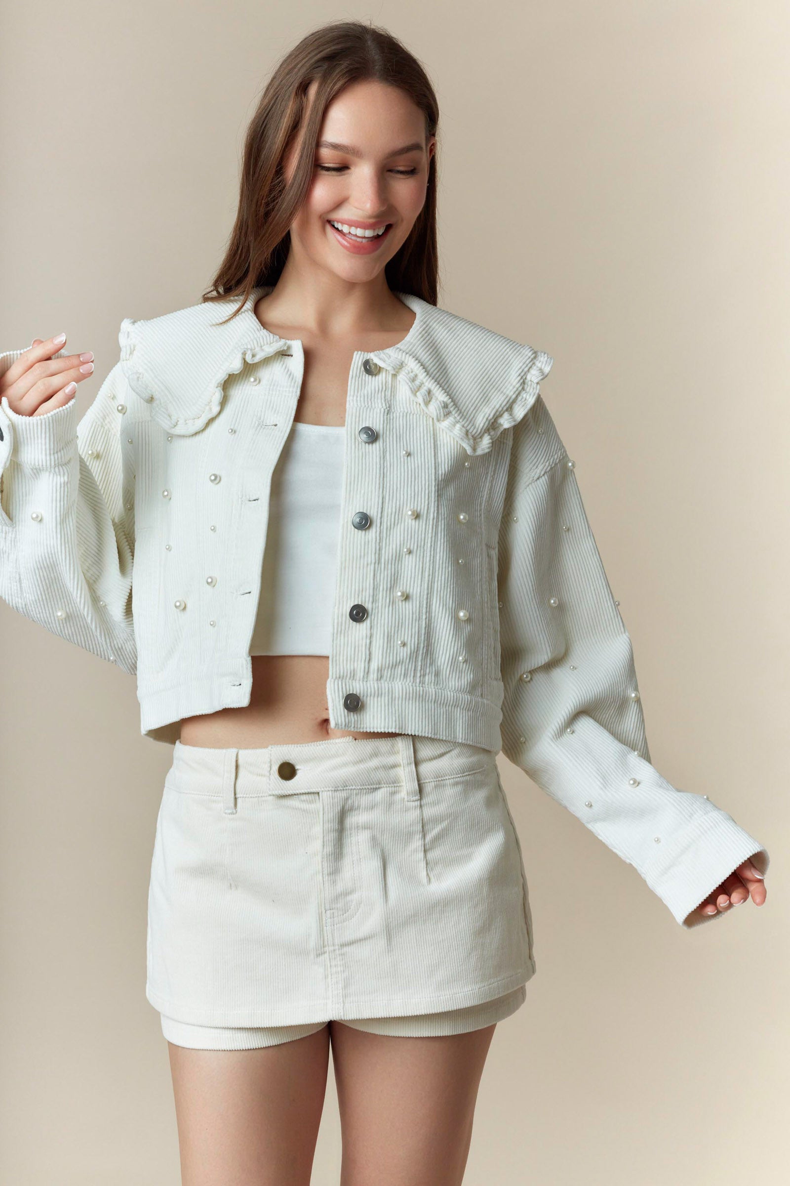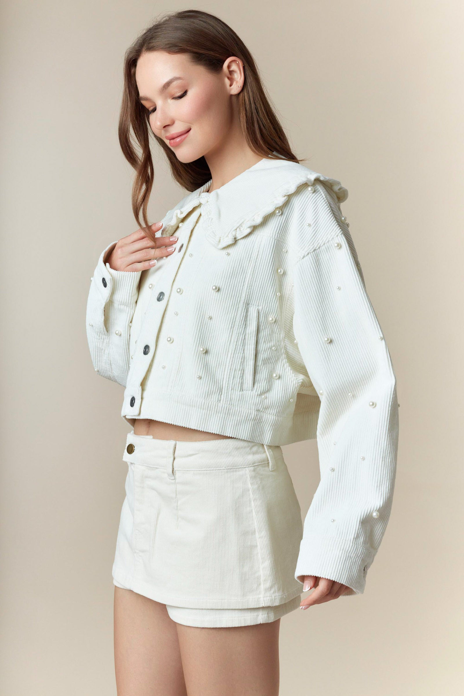 Doll Collar Pearl Detail Washed Corduroy Jacket