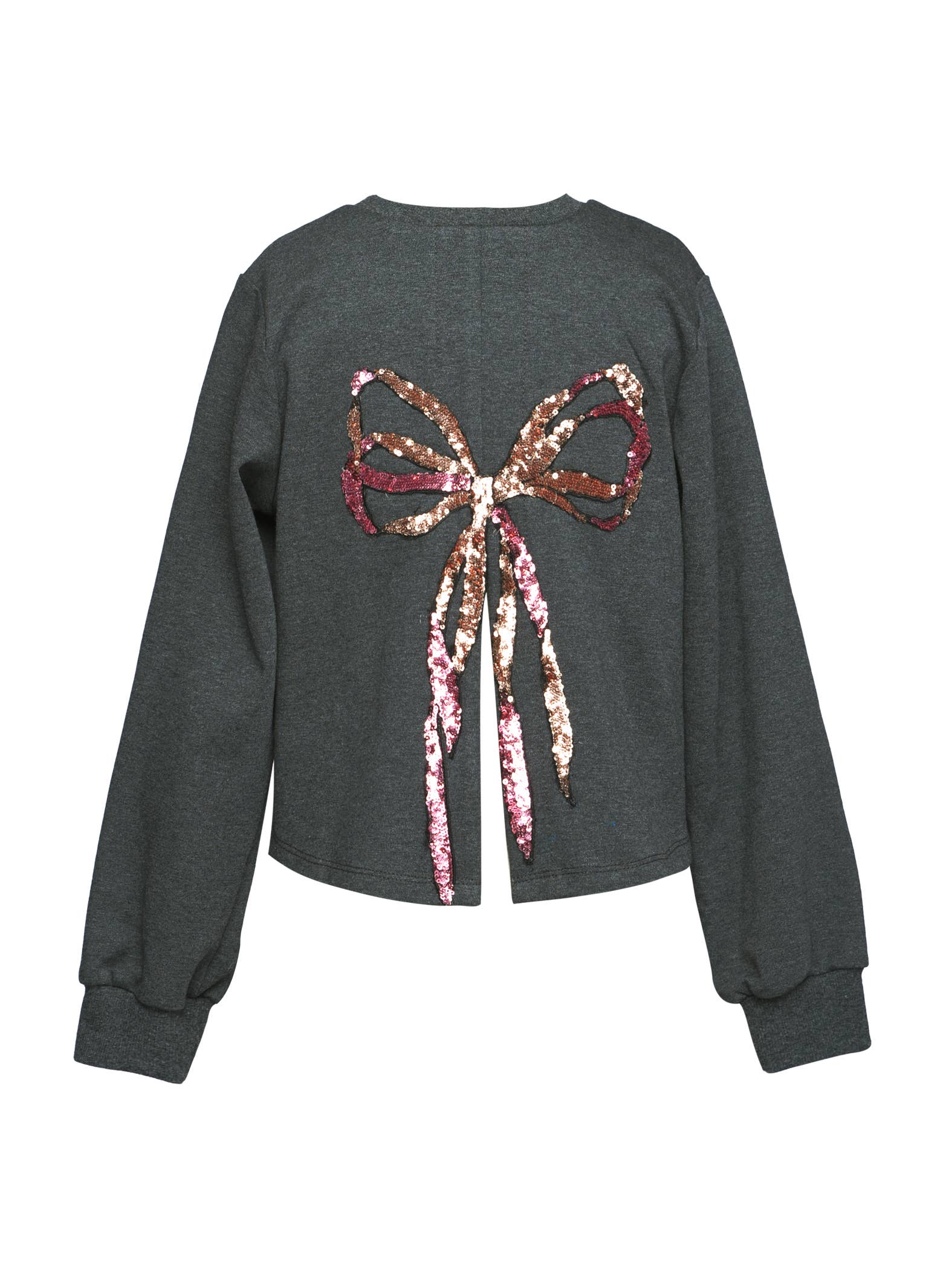 Introducing our Sequin Bow Sweatshirt and Pants Set with a Back Slit and side slits. This long sleeve sweatshirt is designed for kids, offering a fun yet sensible fashion choice. The sequin bow adds a touch of glam while the back slit provides a trendy twist. High-quality materials are used to ensure durability and comfort. Enjoy a fresh, youthful, and unique look with this set, reflecting the style celebrated for.